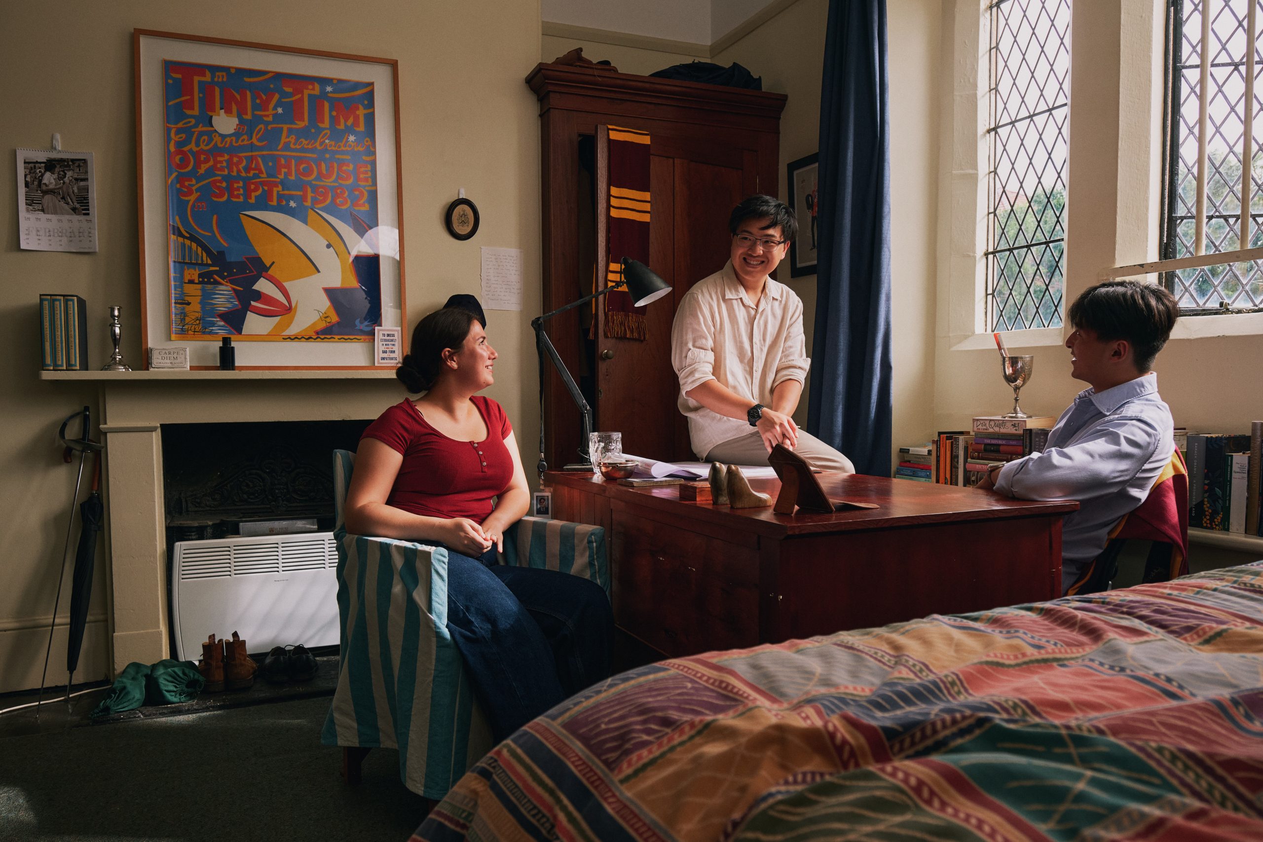 Generally speaking, there are three standards of Undergraduate Rooms allocated according to seniority and level of contribution to College: rooms with shared facilities are allocated to incoming Freshers; rooms with ensuite bathrooms and air-conditioning in the modern Ivan Head Building are popular with seniors, as are the large heritage rooms lining the Radford wing.