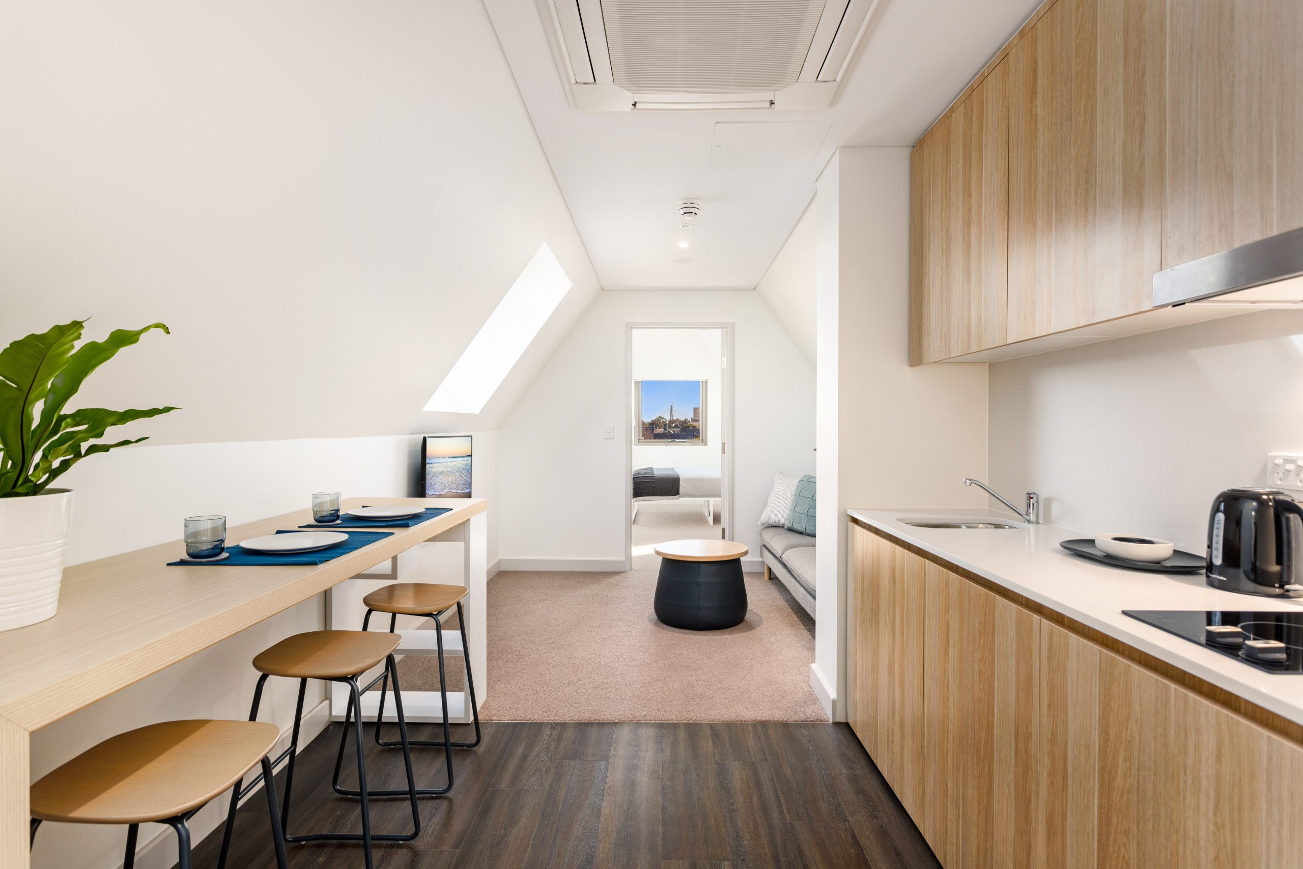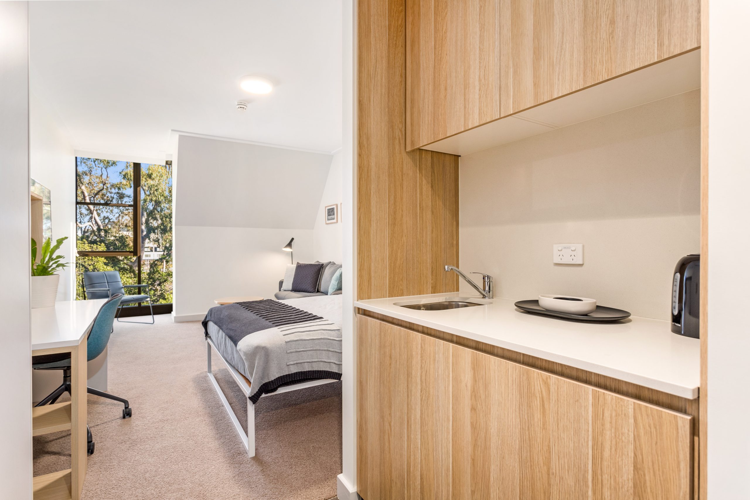 Members of Graduate House live in the McMillan Building. Opened in 2019, the McMillan Building features rooms of the highest standard, and is perhaps the best student accommodation in Sydney. Several room types are available, with most rooms 29 square metres or larger.