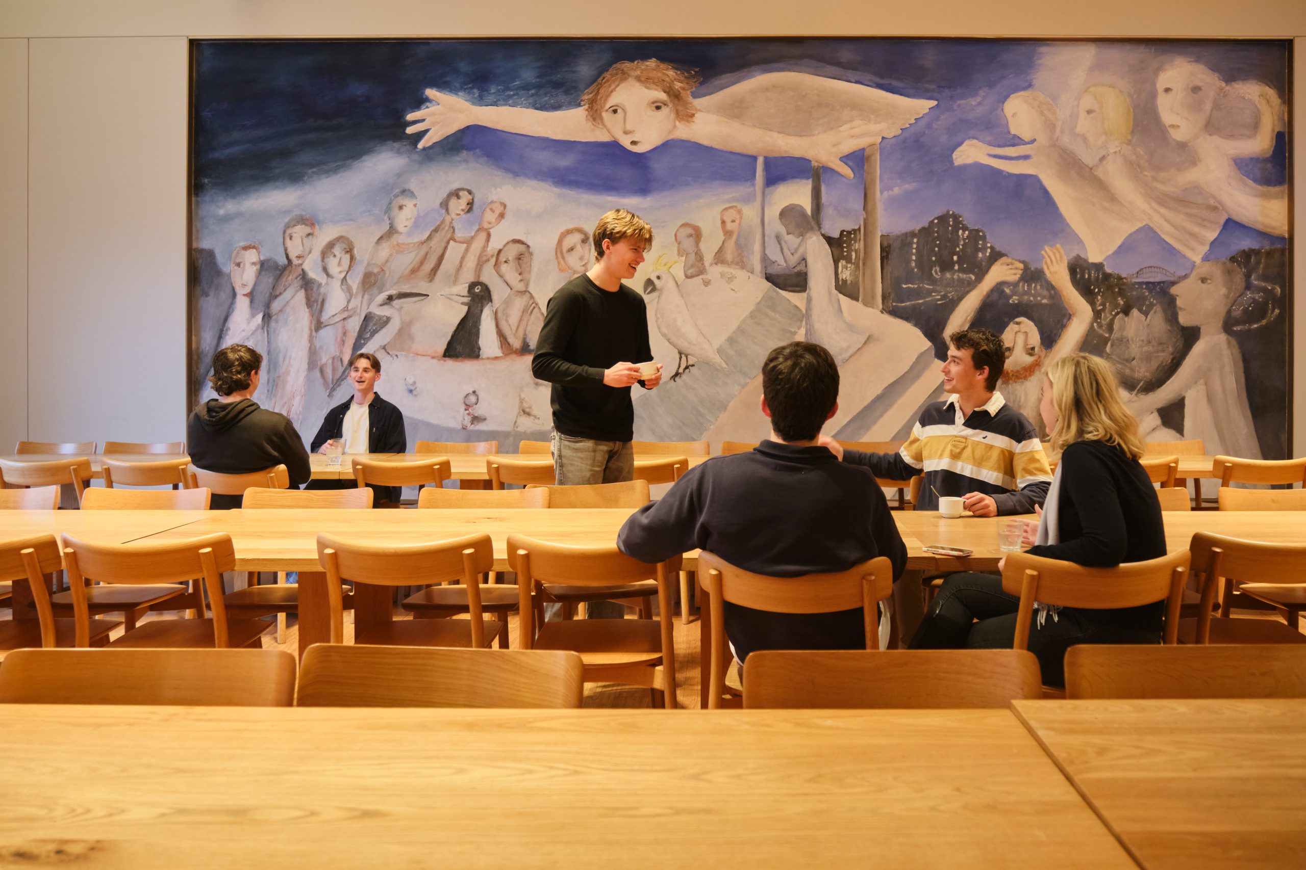 Each floor has communal social space in addition to the shared spaces throughout the House. Within the McMillan Building, sits the Refectory which seats up to 90. Its northern wall features the magnificent eight-metre-long fresco by Australian artist Garry Shead, entitled ‘St Paul’s Altar’.